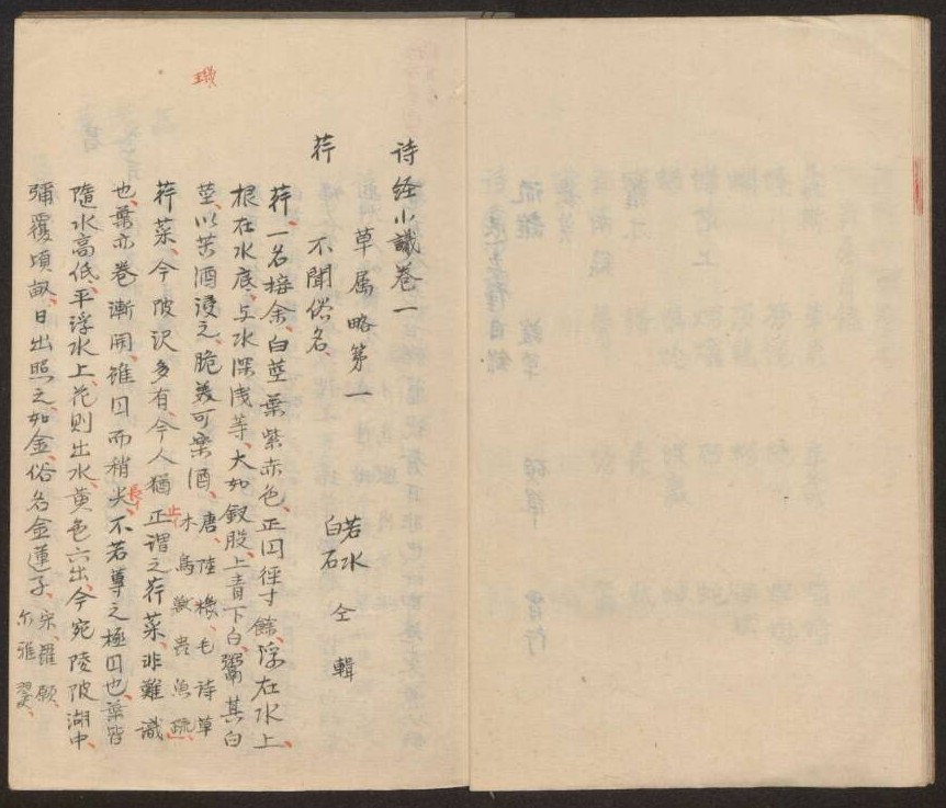 今月ご紹介する『詩経小識』は、中国古代からのうたを集めた『詩経』を解釈するために作られた注釈書です。『詩経』は紀元前11世紀から紀元前7世紀とも6世紀ともいわれる非常に古い時期の漢詩が収載されている書で、そのように古い詩では動植物を表す言葉も異なり、何を表しているのか解説がないとわからないために、作られています。